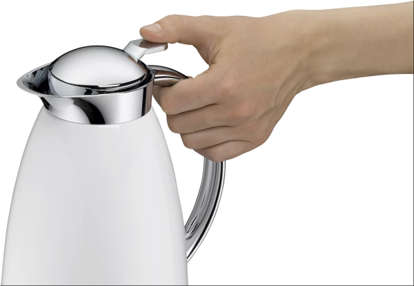Mit dieser Thermoskanne Gusto wird guter Geschmack in Form gebracht. Dank des Vakuum-Hartglaseinsatzes werden Kaffee und Tee bis zu 12 Stunden heiß gehalten. Über die praktische Einhandbedienung und dem intelligenten Air Control Belüftungssystem können die Getränke punkgenau und ohne Spritzer ausgegossen werden. Für eine unkomplizierte, hygienische Reinigung ist der Deckel ist leicht zerlegbar. Darüber hinaus kann sich die Isolierkanne auf jeder Tafel sehen lassen. Das ist ansprechendes Design in perfekter Qualität! Entwickelt in Deutschland.