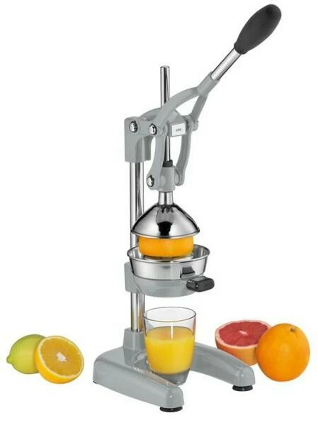 Die Profi Saftpresse Amalfi von cilio überzeugt durch stabile Profiqualität. Im Vergleich zu herkömmlichen Saftpressen kann mit der Amalfi bis zu 25% mehr Saft aus Zitrusfrüchten wie Orangen oder Zitronen gewonnen werden – und das bei wenig Kraftaufwand durch die effektive Hebelwirkung! So bleiben die Kerne und das Fruchtfleisch im Presskegel. Der Presskegel und Trichter sind aus rostfreiem Edelstahl hergestellt.
