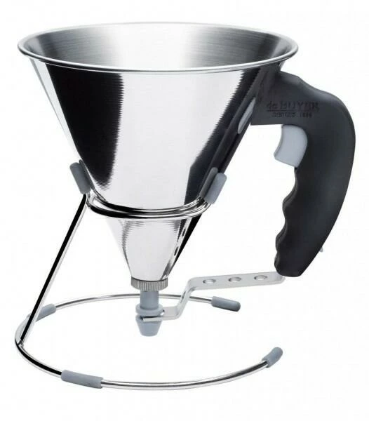 Fondanttrichter Mini mit Standfuss. Punktgenau und professionell dosieren und garnieren. Einfach zu dosieren, einfach zu befüllen.