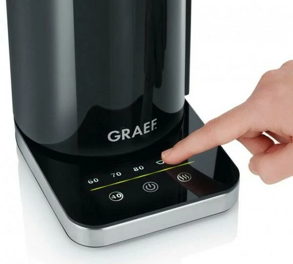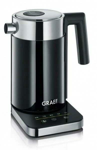 Graef Wasserkocher WK 502 in schwarz. Der innovative Wasserkocher erhitzt Wasser auf verschiedene Temperaturen und ist ebenso zum Erwärmen von Babynahrung erwärmen und Vaporisieren von Babyflaschen geeignet.