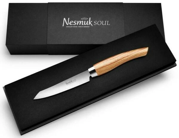Nesmuk verbindet traditionsreiche Handwerkkunst mit modernster Technologie. Das Unternehmen aus Solingen entwickelt und fertigt Messer in höchstmöglicher Schärfe und setzt dabei auf Stahlsorten, Edel-Materialien und Technologien, die in der Schneidwarenindustrie noch nie zuvor verwendet worden sind – und genau das macht den Unterschied! Alle Messer werden unter dem Anspruch gefertigt, in ihrer Schärfe nicht überboten werden zu können und in jedem Anwendungsbereich den feinstmöglichen Schnitt zu ermöglichen. Die Produkte entstehen in mühevoller, mehrjähriger Detail-Arbeit. Alle Produkte sind mit praktischen und dekorativen Alleinstellungsmerkmalen ausgestattet und genießen den Ruf, jeweils die Besten in ihrer Kategorie zu sein! Sie sind zeitlos, funktional und von höchster Qualität. Es macht keinen Unterschied, ob das Messer links- und rechtshändig geführt wird. Zusätzlich bietet Nesmuk eine Vielzahl an praktischen Zubehör zum Schärfen, Aufbewahren, Pflege sowie Arbeiten wie z.B. Streichriemen, Messerhalter und Schneidbretter an.