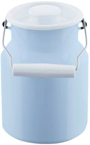 Riess Milchkanne mit Deckel aus Emaille in pastell-blau. Die Kanne im nostalgischen Design ist ideal für Milch, Saft und Wasser, eignet sich aber auch als Aufbewahrung von Küchenhelfern oder sogar als Blumenvase.