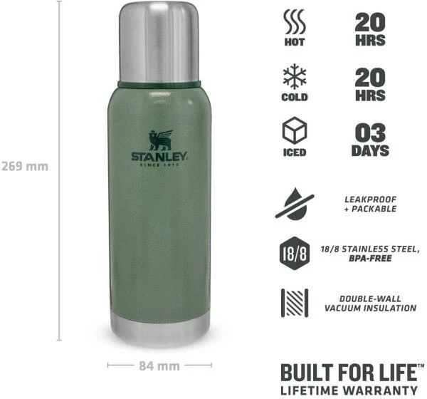 ROBUST UND SICHER: Die Stanley Edelstahlflasche ist “built to last”: hergestellt aus hochwertigem, rostfreien 18/8 Edelstahl, der robust und 100% lebensmittelecht ist. Die Materialien sind frei von BPA, so dass der Inhalt sicher konsumiert werden kann.