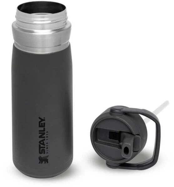 Die Stanley ICEFLOW FLIP STRAW WATER BOTTLE ist die perfekte Wahl für kalte Getränke beim Sport, in der Natur oder einfach beim Unterwegs sein. Das ausklappbare Mundstück – gleichzeitig Verschluss der Flasche – ist im inneren mit einem Kunststoff-Trinkhalm ausgestattet, wodurch die Flasche beim Trinken nicht gekippt werden muss. Zum einfachen Transportieren ist der Deckel mit einem praktischen, beweglichen Tragegriff ausgestattet. Die Trinkflasche aus rostfreiem 18/8-Edelstahl mit Vakuumisolierung besitzt ein Fassungsvermögen von 650 ml und hält Getränke bis zu 12 Stunden gekühlt. Die ICEFLOW FLIP STRAW WATER BOTTLE ist komplett spülmaschinenfest und auslaufsicher. BPA-frei.