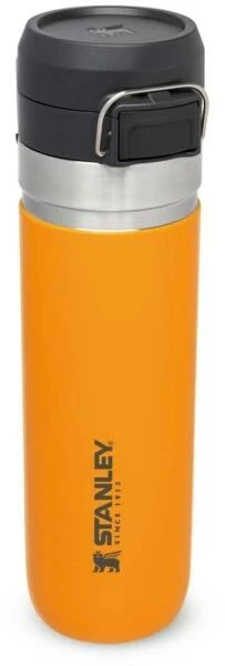 Ob für die Outdoor-Tour, den Sport oder einfach On The Road, die Stanley QUICK-FLIP WATER BOTTLE ist der ideale Begleiter gegen den Durst. Die auslaufsichere Flasche ist mit einem innovativen, zweistufigen Sicherheitsverschluss ausgestattet. Beim Transport wird der Verschluss gegen unbeabsichtigtes Öffnen von einem Edelstahlbügel fixiert. Wird dieser gelöst und der Push-Button Knopf gedrückt, flippt der Deckel federunterstützt auf. Die Trinkflasche aus rostfreiem 18/8-Edelstahl mit Vakuumisolierung besitzt ein Fassungsvermögen von 709 ml und hält Getränke bis zu 8 Stunden heiß oder 12 Stunden gekühlt. Die Flasche passt in gängige PKW-Getränkehalter und ist mit einem beweglichen Bügel zum Anhängen an den Rucksack oder Tragegriff ausgestattet. Alle Teile können in der Spülmaschine gereinigt werden. BPA-frei.