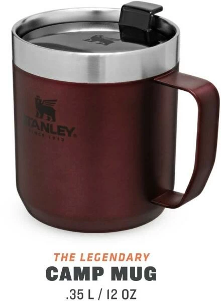 Der Stanley CLASSIC CAMP MUG im neuen Design hält mit seiner doppelwandigen Edelstahl-Vakuumisolierung heiße Getränke bis zu 1,5 Stunden heiß und kalte Getränke bis zu 3 Stunden kalt. Neu ist, dass der aus rostfreiem 18/8-Edelstahl hergestellte Trinkbecher jetzt einen durchsichtigen Deckel aus bruchfestem Tritan-Kunststoff besitzt, aus den es sich noch bequemer trinken lässt. Der mit roter Lackierung versehene CLASSIC CAMP MUG ist spülmaschinenfest und alle Teile sind BPA-frei.