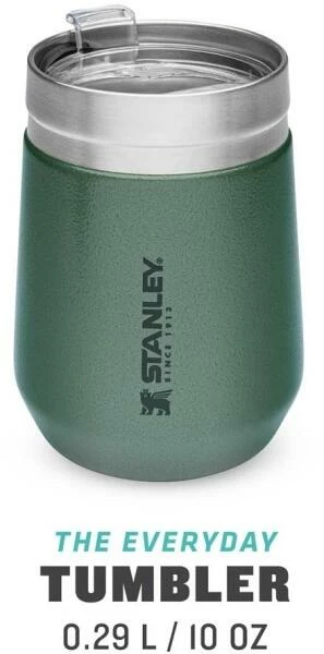 Der Stanley EVERYDAY TUMBLER hält mit seiner doppelwandigen Edelstahl-Vakuumisolierung heiße Getränke bis zu 1,5 Stunden heiß und kalte Getränke bis zu 5 Stunden kalt. Der aus rostfreiem 18/8-Edelstahl hergestellte Trinkbecher besitzt einen durchsichtigen Deckel aus bruchfestem Tritan-Kunststoff, aus welchem sich bequem und einfach trinken lässt. Der in drei Farben erhältliche EVERYDAY TUMBLER ist spülmaschinenfest und alle Teile sind BPA-frei.