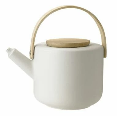 Stelton Teekanne Theo in sand, 1,25 Liter. Skandinavische Gemütlichkeit kommt mit der Teekanne aus Steingut auf. Mit Griff und Deckel aus Bambus.