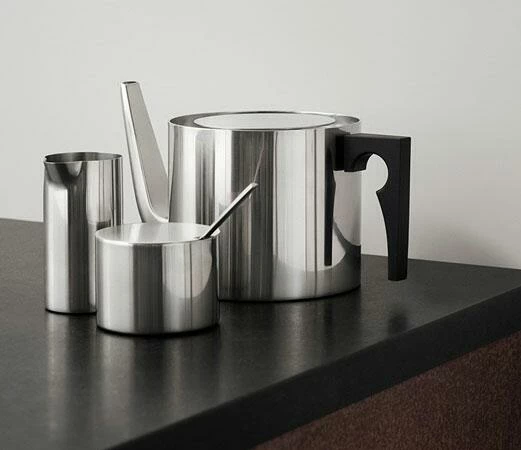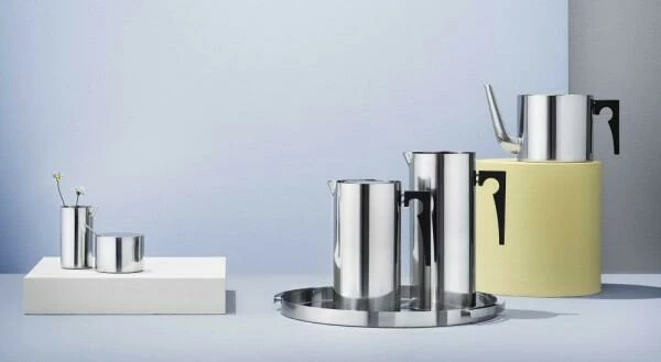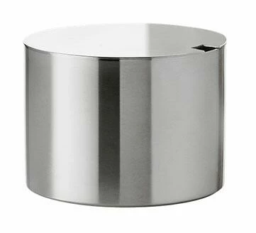Die Zuckerschale gehört zu der bekannten Cylinda Line von Stelton, die Arne Jacobsen entworfen hat. Die Serie ist bekannt für ihre Produkte, die durch eine gradlinige, zylindrische Form bestechen und über außergewöhnlich geformte Griffe aus Kunststoff und eine gebürstete Stahloberfläche verfügen. Die Cylinda-Line wurde schnell zum Klassiker von Stelton. 1967 wurde die Serie zudem mit dem ID Preis ausgezeichnet.
