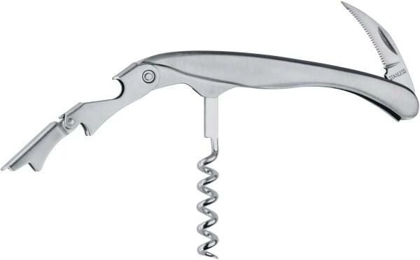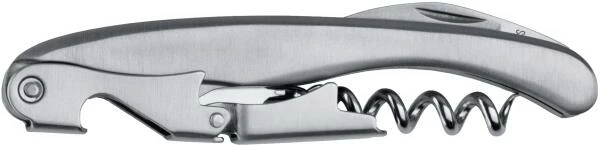 Kellnermesser in schwerer Qualität mit doppeltem Gelenk und feingezahnter Klinge zum Öffnen von Manschetten. Die doppelte Hebelwinkung erleichetert das Öffnen und ermöglicht einen sanften, gleichmäßigen Zug. Rostfrei und spülmaschinengeeignet.