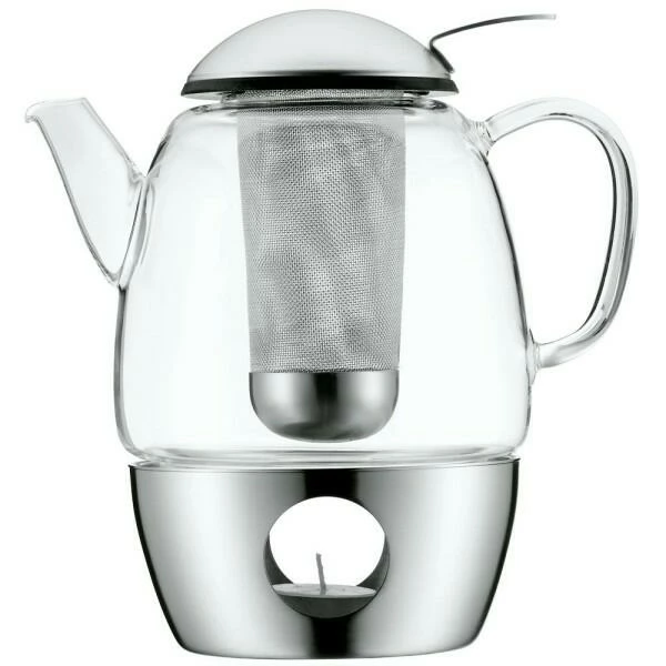 Das WMF SmarTea-Set besteht aus einem transparenten, klaren Glaskörper. Dieser Glaskörper sitzt auf einem Sockel aus Edelstahl mit einer Öffnung für ein Teelicht, das zum Warmhalten des Tee dient. Das abnehmbare Teesieb ist aus hochwertigem Edelstahl hergestellt und wird einer Gummidichtung beigefügt, die als Siegel dient. Der Deckel ist ebenso aus rostfreiem Stahl. Dieser SmarTea-Satz unterstreicht die hohe Qualität und Funktionalitätsnormen von WMF.