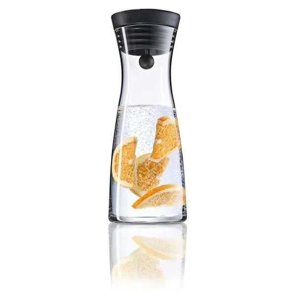 WMF Wasserkaraffe Basic. Die Wasserkaraffe Basic mit den Close up- Verschluss. Durch die große Öffnung ist ein leichtes Befüllen möglich. Zusätzlich gibt es nun auch einen Deckelverschluss, der den Inhalt frisch und appetitlich hält. Zur einfachen Reinigung sind Reinigungsperlen zusätzlich erhältlich.