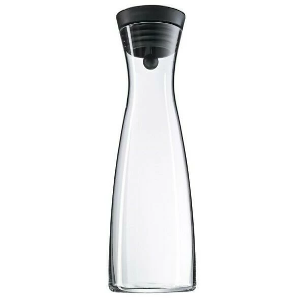 WMF Wasserkaraffe schwarz, 1,5 Liter. Die Wasserkaraffe Basic mit den Close up- Verschluss. Durch die große Öffnung ist ein leichtes Befüllen möglich. Zusätzlich gibt es nun auch einen Deckelverschluss, der den Inhalt frisch und appetitlich hält. Zur einfachen Reinigung sind Reinigungsperlen zusätzlich erhältlich.